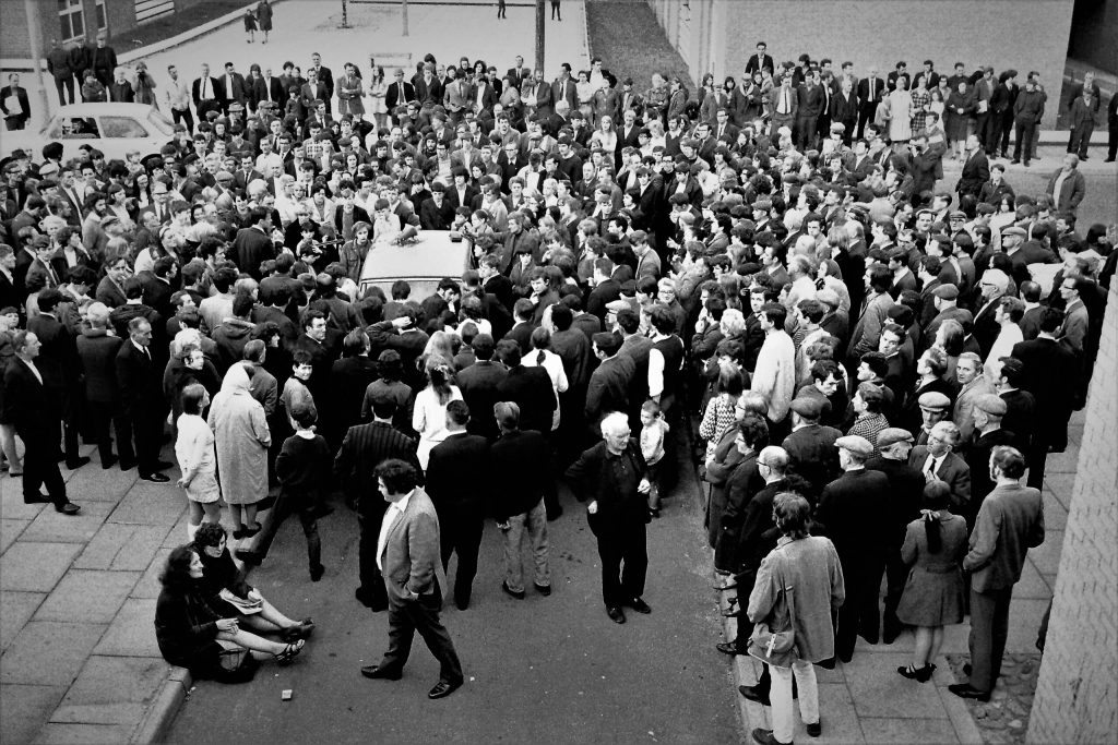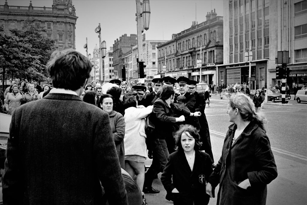Armed with a Leica camera, he documented local communities during the Troubles and severe flooding, capturing not only protests and unrest but also moments of everyday life.